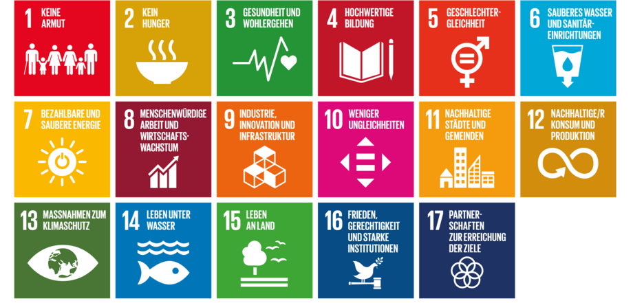 Wir orientieren uns an den in der Agenda 2030 von der UN festgelegten 17 Nachhaltigkeitszielen, die Sustainable Development Goals, kurz als SDGs bezeichnet.