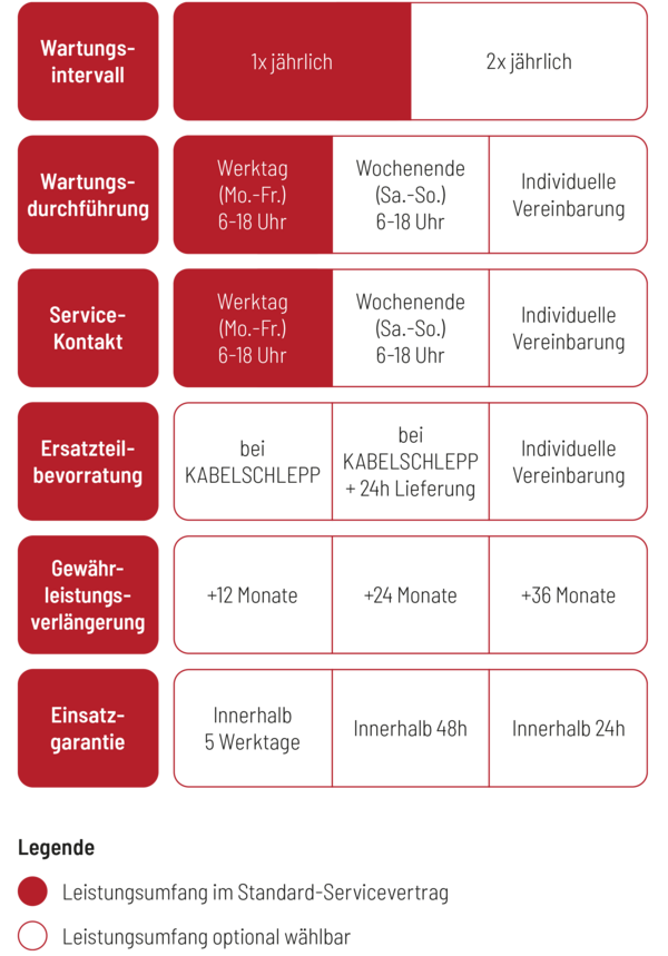 Profitieren Sie deshalb von unseren ProService™ Programmen, die individuell auf Ihre spezielle Anwendung und Ihre Anforderungen zugeschnitten sind. Dabei decken wir das komplette Spektrum von der Neuinstallation über Standardwartungen bis hin zu Störungsbehebungen und Retrofits ab und unterstützen Sie proaktiv über den gesamten Lebenszyklus Ihres KABELSCHLEPP-Produkts.