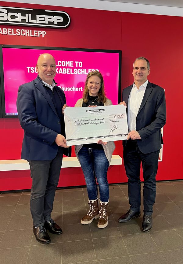 Am 9. und 12. Januar übergab die KABELSCHLEPP-Geschäftsführung die Spenden an zwei Empfänger, die das Unternehmen bereits seit längerem begleitet: die Ökumenische Initiative Warenkorb in Olpe, die als Tafel für Olpe, Drolshagen und Wenden tätig ist sowie das Kinderpalliativteam der DRK-Kinderklinik Siegen (KiPS). Beide Organisationen erhielten jeweils 6.900 Euro.