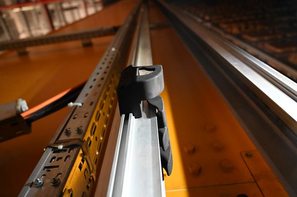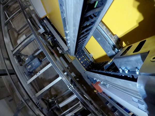 Der Startschuss für das Projekt fiel Anfang 2023, als TSUBAKI KABELSCHLEPP das neue Rückhaltesystem TKVG vorstellte. Ein einbaufertiges Kanalsystem für vertikal hängende Anwendungen, das sich hervorragend in schnell verfahrenden RBG mit hohen Querbeschleunigungen einsetzen lässt. Darüber hinaus ist das TKVG als anschlussfertiges Komplettsystem inklusive Mitnehmer, Leitungen und Zugentlastungen konzipiert und dadurch sehr montagefreundlich und in bestehende RBG leicht zu integrieren.