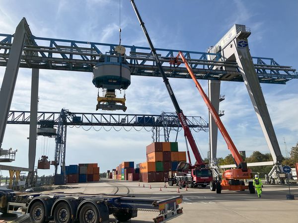 As part of a terminal expansion at the Emmerich river port, Contargo is planning to replace one of its two container cranes in 2025. To ensure smooth operations during this period, the company decided to first have the remaining crane overhauled. Having already delivered a convincing performance with its pre-configured complete cable carrier systems (TOTALTRAX) at other Contargo sites in the past, TSUBAKI KABELSCHLEPP received the order for the crane retrofit in August 2024. The brief: maximum operational safety for the years to come. The challenge: replacing the two cable carriers during ongoing operation within the shortest time possible.