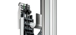 Les goulottes de guidage sont des éléments importants pour la sécurité fonctionnelle avec les courses longues. Le brin supérieur de la chaîne porte-câble glisse ici sur le brin inférieur et derrière le point fixe sur la surface de glissement de la goulotte de guidage. Les goulottes de guidage empêchent que le brin supérieur ne glisse du brin inférieur et garantissent un fonctionnement fluide et résistant à l’usure. Une goulotte verticale garantit un guidage vertical pour les applications verticales comme les ascenseurs ou transstockeurs.