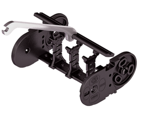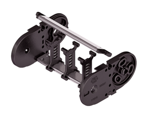 Per il montaggio della catena “girata di 90°” (scorrimento in costa), la catena viene dotata di pattini di scorrimento laterali che ottimizzano le condizioni di frizione e usura.